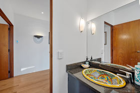 This remarkable residence boasts a seamless indoor-outdoor flow, with expansive decks that invite you to enjoy al fresco dining while taking in the ever-changing coastal landscape. The gardens further enhance the sense of tranquility, offering a private oasis where mature plantings and greenery complement the home's striking architectural lines.